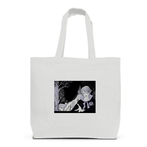 注意書きが貼られた木や、風に揺れる枯れ枝など、細かい部分まで丁寧に描かれていなす。イラスト全体がモノクロで統一されており、ミステリアスな雰囲気をさらに強調しています。