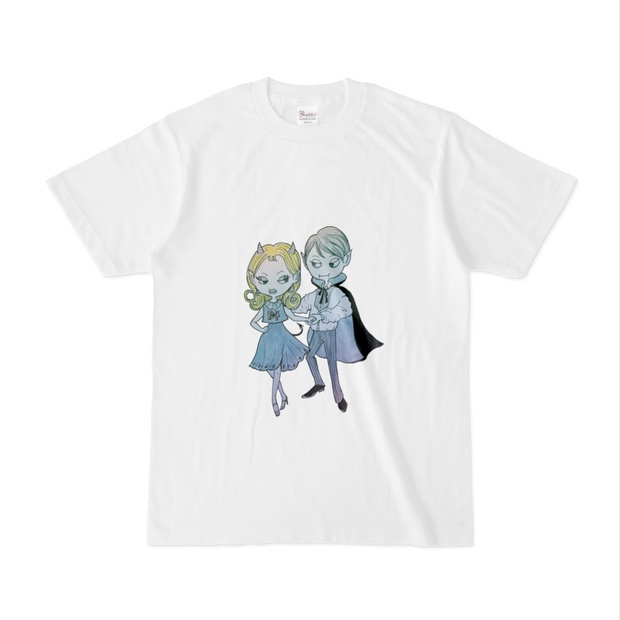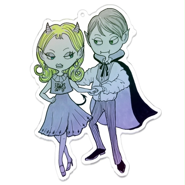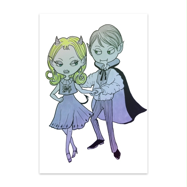 ブロンドヘアのキュートなデビル(悪魔)とクラシックな装いのヴァンパイア(吸血鬼)。ダークファンタジーな世界観が表現されています。