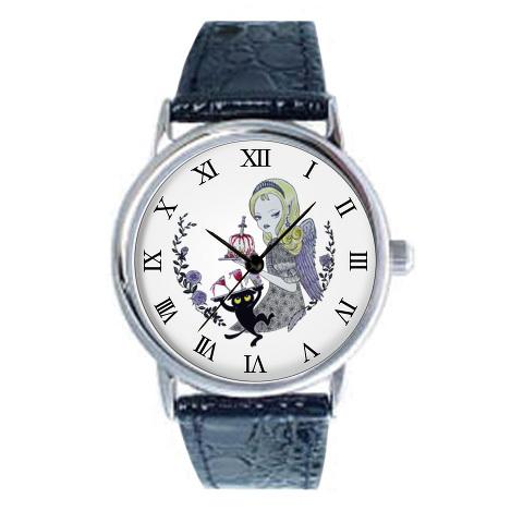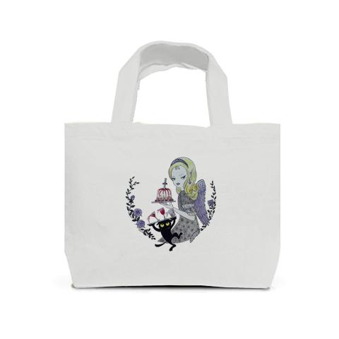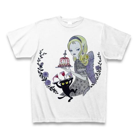 金色の髪と紫の羽を持つ美女と大きな黄色い瞳の黒猫、そして短剣が刺さり血のように赤いソースが滴るケーキや、今にもこぼれそうなカクテルグラスが、妖しくも美しいハロウィンの夜の準備を彩っています。