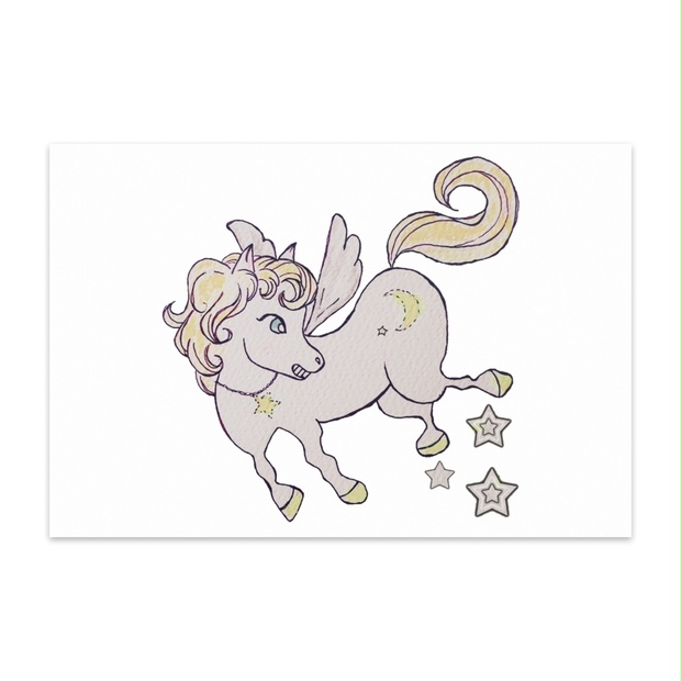 Miジンコさんの手書きイラスト「ペガサス」は、月や星のモチーフを取り入れたやさしく幻想的な世界観を表現しています。